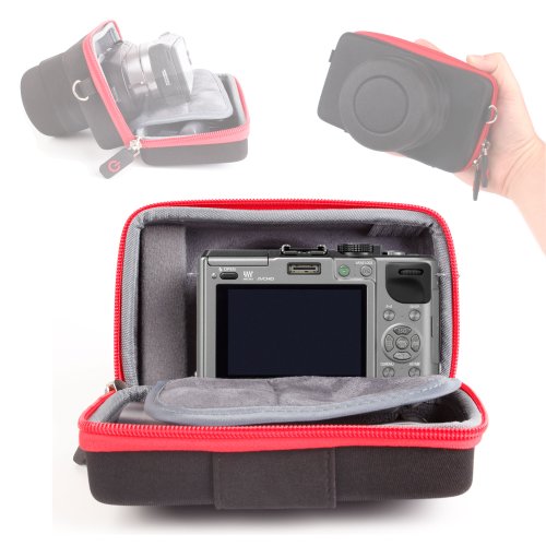 DURAGADGET vous présente cet étui rigide et compact en rouge et noir prévu spécialement pour l'utilisation de votre appareil Reflex ou Bridge.