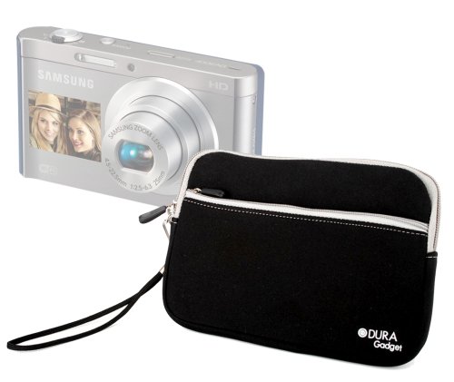 DURAGADGET Housse étui luxe en néoprène noir résistant à l'eau + poignée bonus pour appareil photo numérique compact Samsung Smart Camera DV300F et DV150F double écran avec technologie Wi-Fi intégrée - Garantie 2 ans